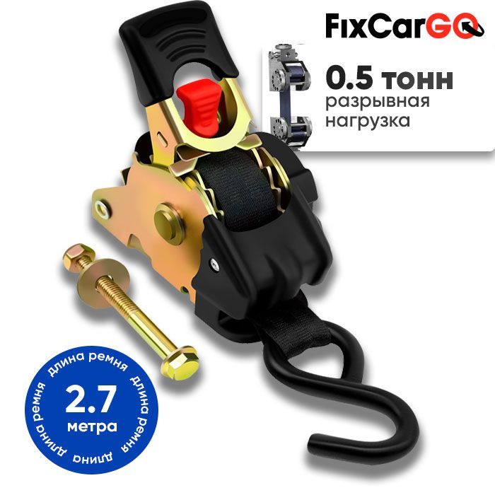 Ремень самозатягивающийся 25 мм, 2,7 м, крюк-болт в комплекте с чехлом
