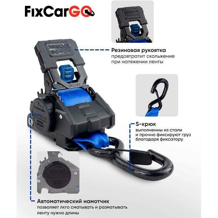 • Самозатягивающийся ремень 50 мм, 2,7 м, с функцией самонатяжения